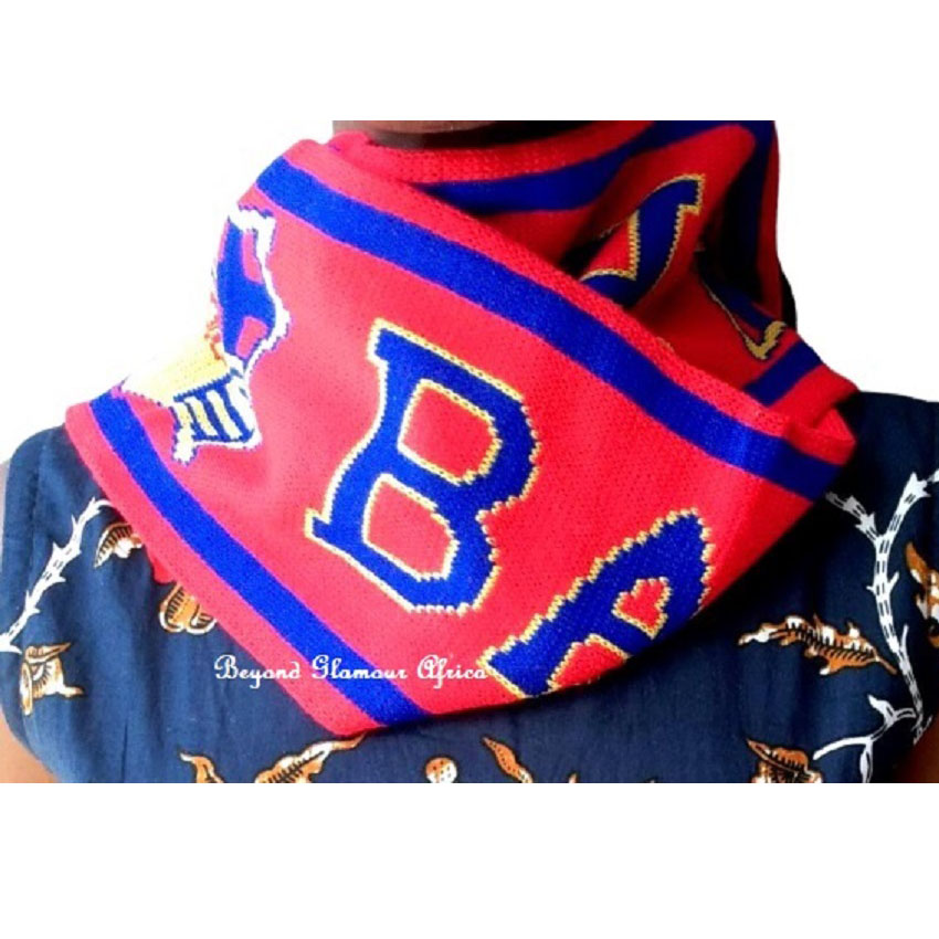 • Keep warm at the games with this knitted scarf.